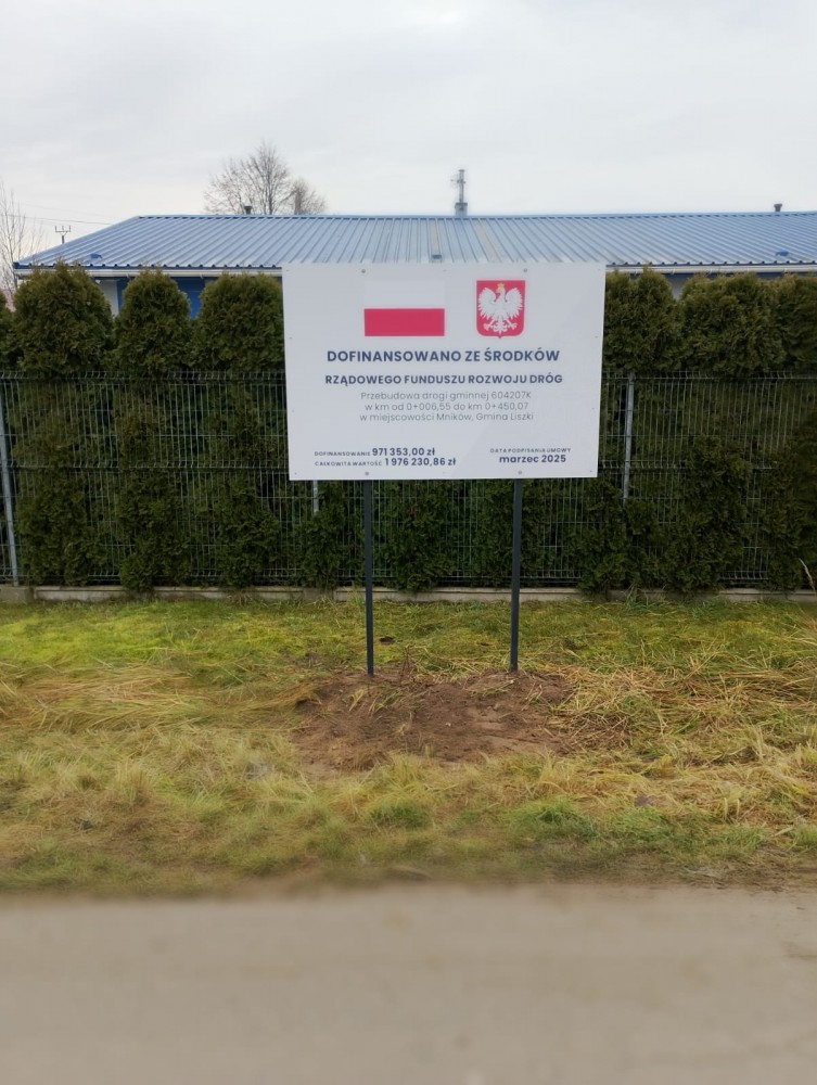 Wójt Gminy Liszki Wojciech Starowicz podpisał umowę na realizację inwestycji pn. „Przebudowa drogi gminnej nr 604207K w km od 0+006,55 do km 0+450,07 w miejscowości Mników”, współfinansowanej w ramach Rządowego Funduszu Rozwoju Dróg.