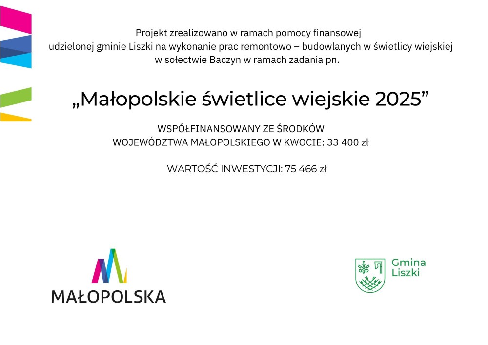 Zakończono realizację zadania inwestycyjnego pn. „Remont Budynku Domu Ludowego w Baczynie", a wykonane roboty zostały odebrane bez zastrzeżeń.