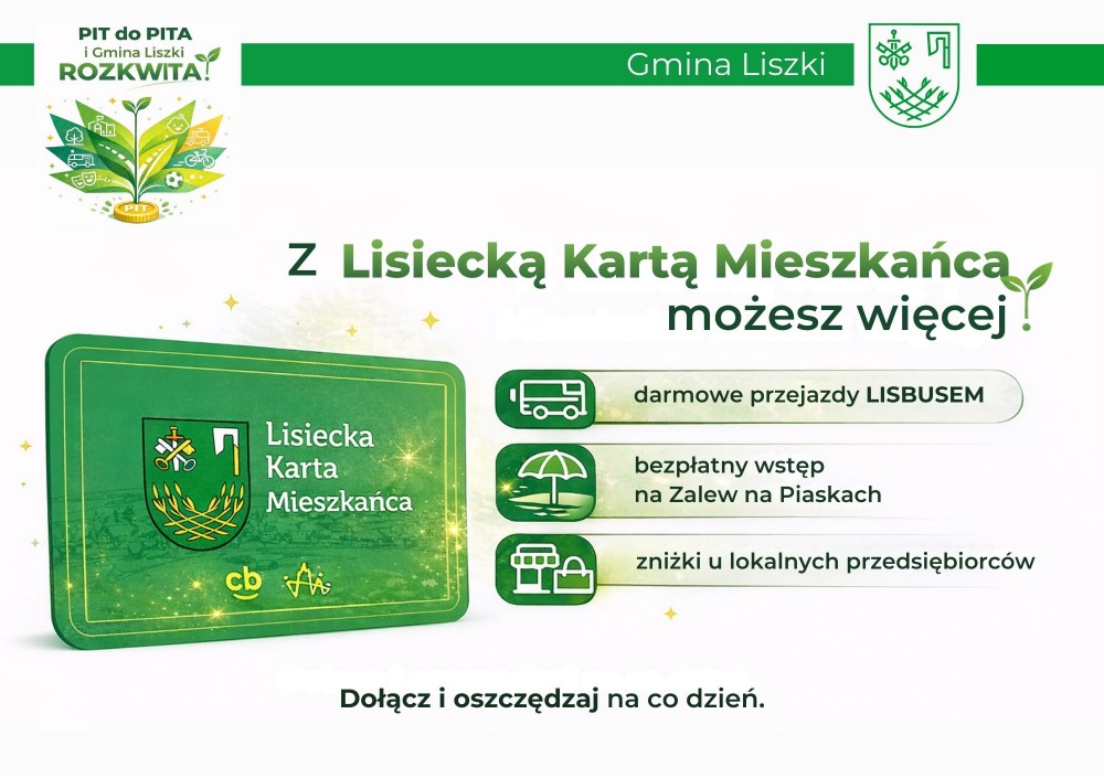 Osoby, które w swoim zeznaniu podatkowym wskażą Gminę Liszki jako miejsce zamieszkania, mogą korzystać z Lisieckiej Karty Mieszkańca.