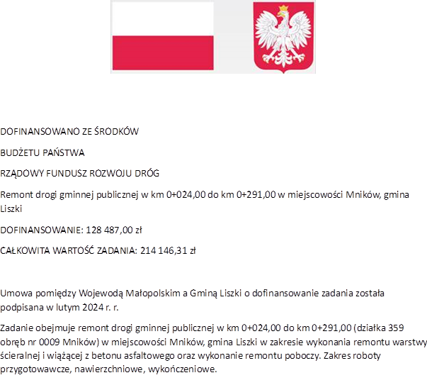 Dofinansowanie remontu drogi gminnej publicznej w miejscowości Mników