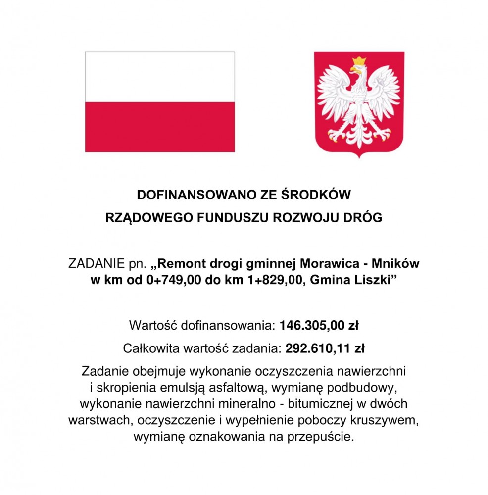 - Środkom z budżetu Gminy Liszki w wysokości 9 461,00 zł.